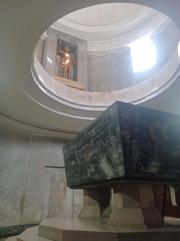 On a second level stands a statue of a proud Quezon delivering a speech, sculpted by National Artist Guillermo Tolentino. Finally, the dome ceiling—the center of which is a circular aperture surrounded by three identical sculptures of carabao heads through which sunlight radiates down to fill the solemn hall. Here, you can pay respect to the Filipino president and statesman who lived, survived, and maneuvered through his legal and political career with the full might of the US Empire breathing down his neck until his very end.